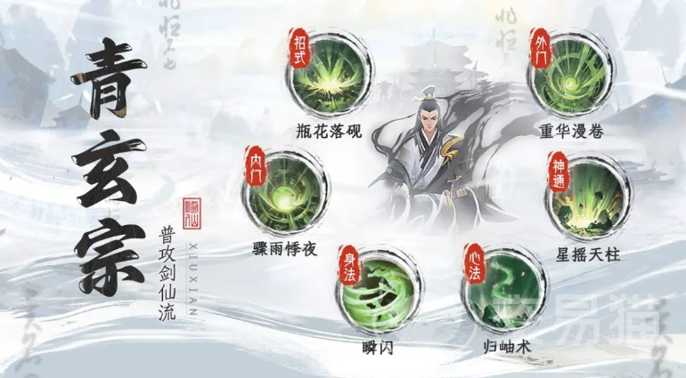 青玄宗走木系远程路线,以剑意积叠为核心机制。外门通过普攻与技能持续叠加剑意层数,层数越高,基础伤害与附加效果越强;内门技能额外附带击退效果,在保证输出的同时增强生存容错率,并小幅提升普攻攻速。心法推荐归岫术,可将剑意转化为空间位移增益,进一步强化机动性与节奏掌控能力。