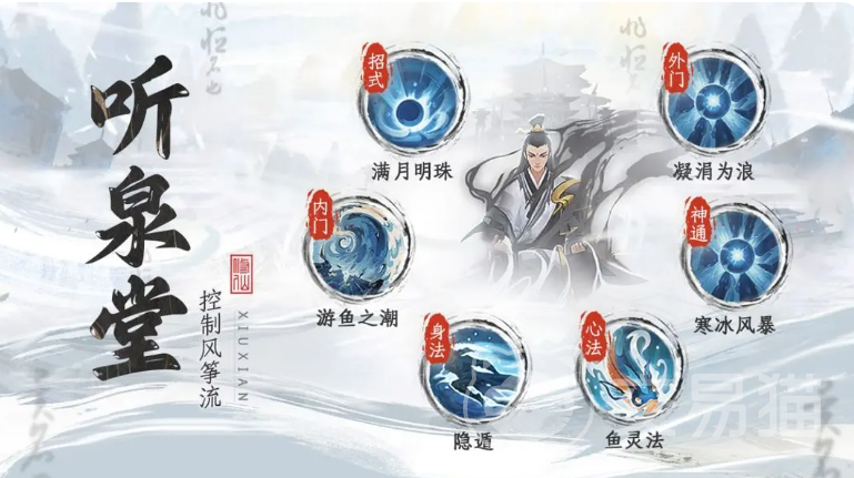 听泉堂专注水系控制与范围压制。外门技能在敌人处于控制状态时触发高额AOE伤害,具备极强的破防穿透性;内门则强化灵活性与战术纵深,技能兼具范围击退与寒霜附着效果,可有效延缓敌方行动节奏。该宗门推荐采用远程风筝打法,依托地形与技能联动实现“控—打—撤”高效循环。
