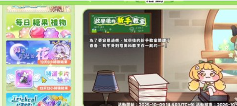 新注册玩家可参与专属新手活动,如“早恋新手教室”等引导类内容。活动期间,完成每日签到等轻量任务即可领取糖果奖励;若连续7天完成签到,还将解锁额外糖果及实用道具。所有新手活动入口均位于主界面左侧工具栏,便于快速访问与持续参与。