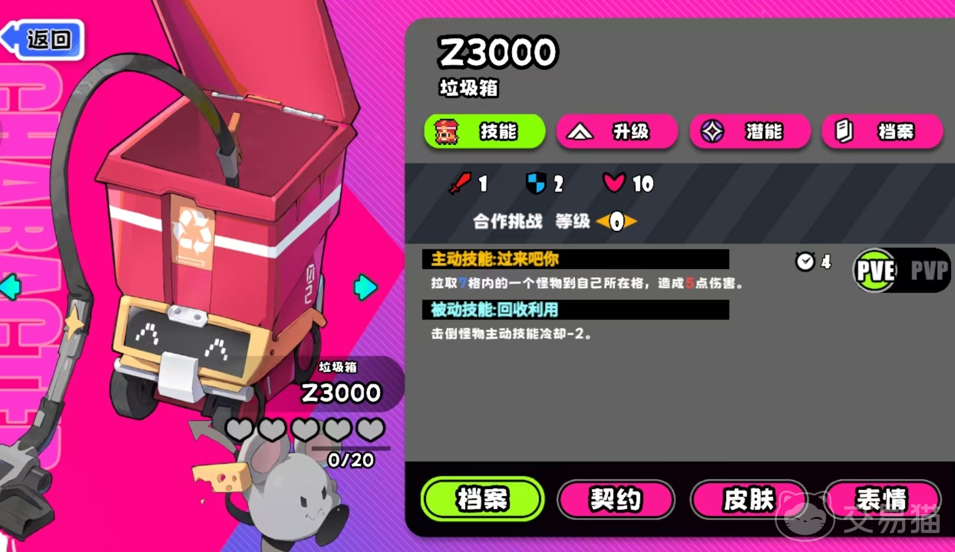基于上述机制,垃圾桶完全可胜任回合制战斗中的主力输出定位。玩家可通过高频击倒敌人持续缩短技能CD,构建稳定压制节奏。若进一步搭配具备自爆类手牌支援能力的角色,或拥有远程压血线功能的队友,整体协同效率将明显提升。此外,垃圾桶在潜能解锁后还附带成长型强化:每击倒2只怪物,永久提升1点攻击力;当攻击力达到6点后,还可对被拉取至身边的敌人发动额外一次主动攻击,从而显著抬高其战术上限与后期强度。