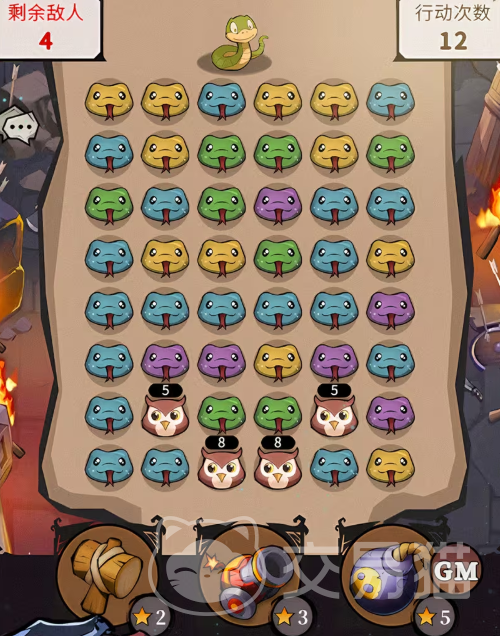 “蛇蛇连一连”是一款融合消除机制与战斗反馈的轻度策略小游戏。玩家需通过连接蛇形单位触发消除效果,对猫头鹰目标造成伤害。单局设有行动次数限制,且猫头鹰存在多阶段形态变化。通关后可获得金币、经验及钻石等实用资源,兼顾休闲性与策略深度。