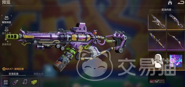 本次测试中最具代表性的限定奖励为“涂鸦狂潮”AK47臻品枪皮。该皮肤不仅具备独特视觉表现,更内置特殊机制:首次获得时即触发暴击效果,自动发放当前奖池中所有未拥有的剩余奖励,实现一次性全收集。
