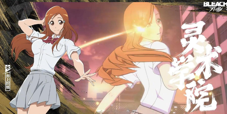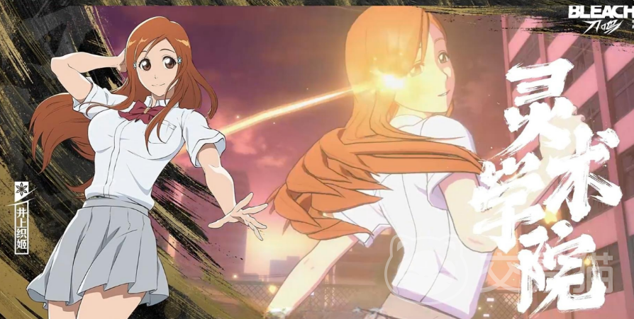 井上织姬为纯辅助型角色,核心职能为治疗与减防。普攻虽伤害偏低,但附带光属性持续消耗效果,并可降低敌方护甲值;当自身生命值低于30%时,被动自动触发护盾,显著提升容错率与续航能力。角色形象以蜜糖色发色与琥珀色瞳孔为视觉特征,突出温柔坚韧气质。
