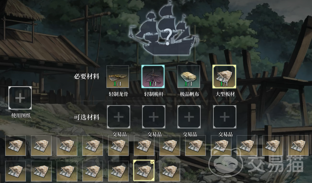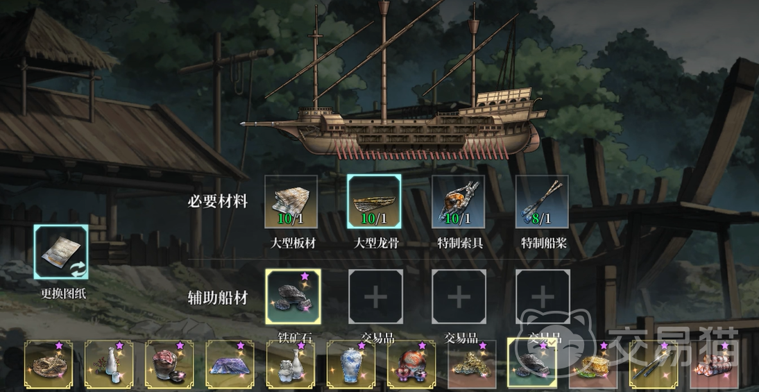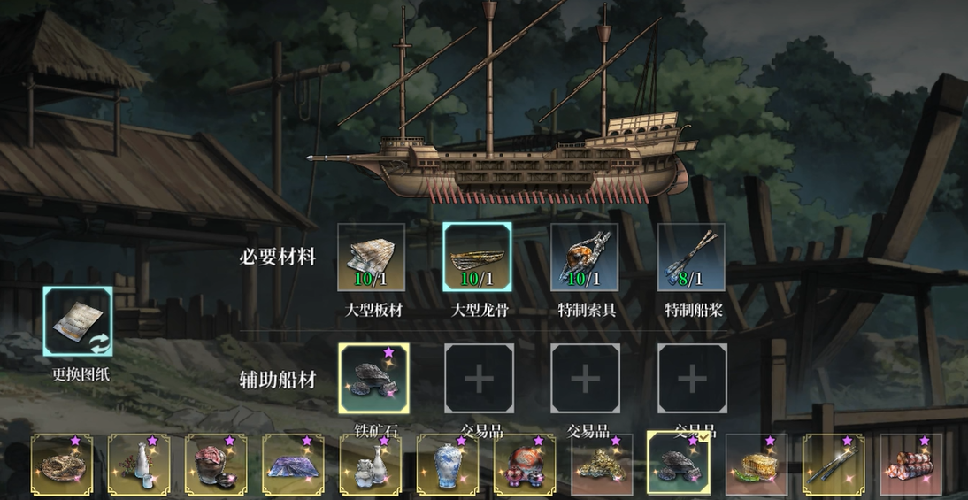 造船存在两种基础路径:其一是按图索骥式建造,即使用指定船型图纸,所有材料由图纸锁定,不可更换,操作门槛低但结果存在不确定性;其二是无图纸自由装配,玩家自主选择龙骨、桅杆、帆布、板材四大核心部件,组合自由度高,但需自行匹配部件品质与适配性。值得注意的是,图纸建造具有“船型溢出”特性——例如投入福船图纸,实际产出可能为赶缯船、开浪船或哨船;使用加莱赛排桨船图纸,则有概率生成奥斯曼巨型排桨船、威尼斯炮舰,甚至稀有紫色品质的国王号。