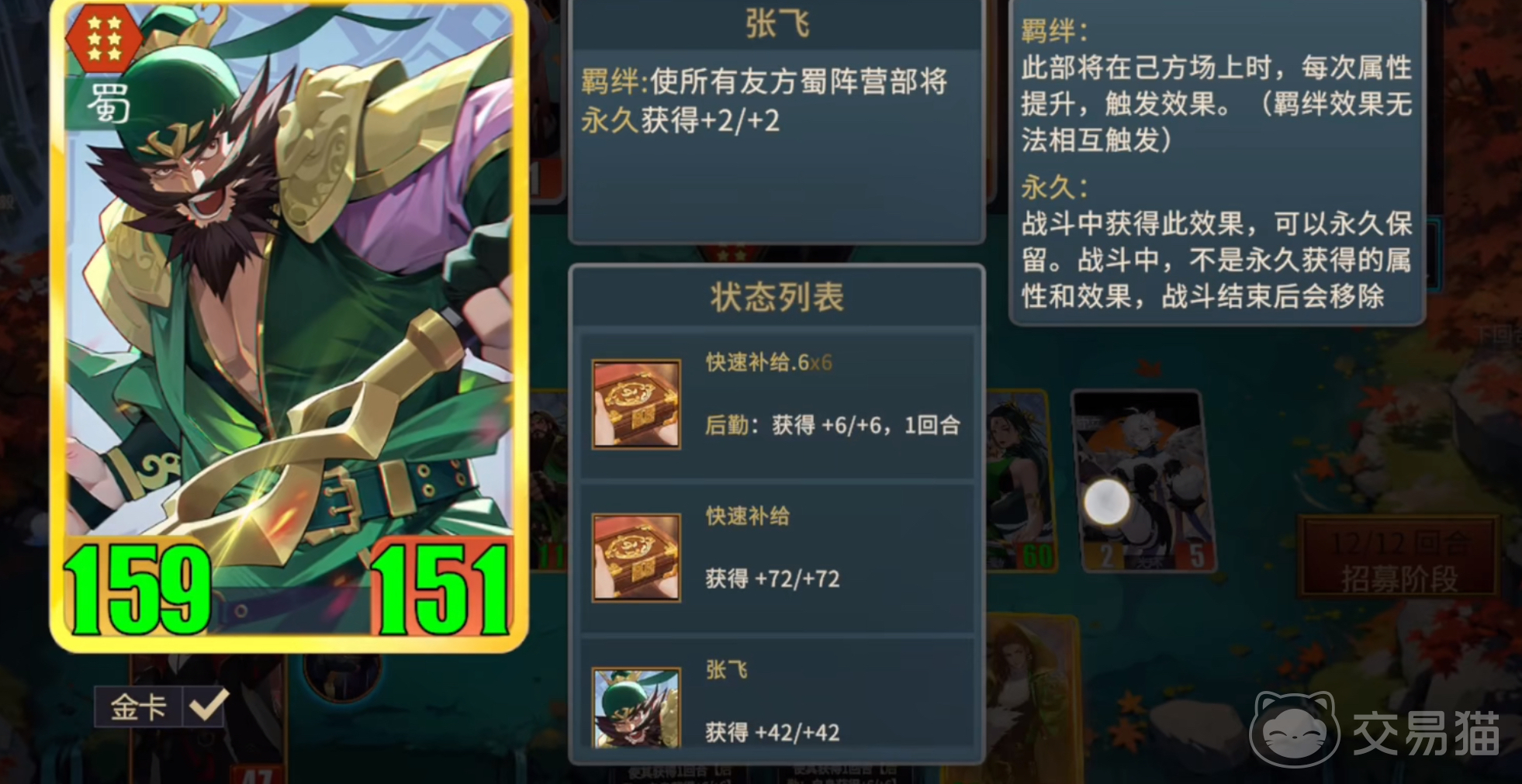 以蜀国阵容为例,其视觉标识以黑色与绿色为主色调,机制设计高度聚焦于阵营归属与协同增益。触发蜀国羁绊的前提是上阵指定数量的蜀国武将卡牌,不同数量对应不同层级的效果激活。开局阶段建议优先选取3张低星蜀国卡牌组建基础阵容,快速达成首段羁绊,实现战力平稳过渡。该阶段重在稳定成型,避免因过度追求高星而延误羁绊节奏。