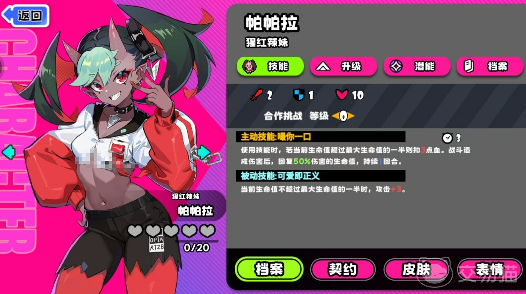 她的被动能力则进一步强化了机制联动性:当当前生命值低于最大生命值50%时,永久获得+3点攻击力加成。该效果可与主动技能无缝衔接——即使初始血量高于半血,只要主动技扣除的3点生命恰好使其跌破50%阈值,被动即刻生效。这意味着帕帕拉可在同一回合内完成“扣血→触发被动→提升伤害→确保战斗胜利→按比例回血”的完整循环,甚至实现净收益回血,显著提升续航能力。