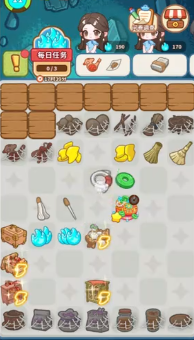 常规关卡以环境解谜为核心,玩家需在场景中识别可交互元素(如编钟、抽屉、旧书页等),结合文字提示与视觉线索,推导出正确操作顺序或组合逻辑。部分关卡则引入三消机制作为玩法变体:在限定步数内匹配三个及以上相同图标,即可生成对应功能道具。此类关卡虽含一定随机性,但熟练掌握道具连锁消除与技能释放时机,可显著提升通关效率。