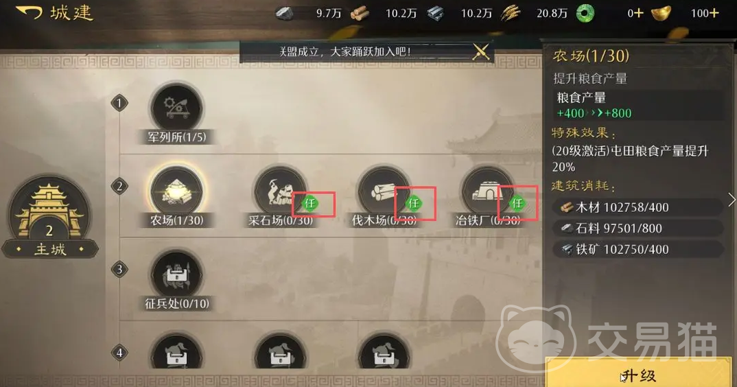 主线任务是前期经验与资源的主要来源,应作为每日推进重心。完成主线不仅能获取大量成长性奖励,还可逐步解锁伐木场、农田、铁矿、石料厂等关键建筑,加快主城整体发展速度。