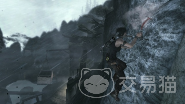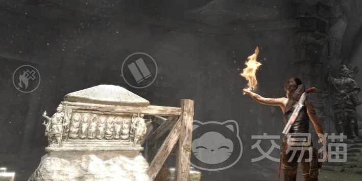 拾取秘宝后,绕行至瀑布后方入口,正式进入古墓内部。进门后使用斧头辅助上攀,点燃初始火把,沿通道前行抵达名为“劣民之坟”的临时营地。洞内陈列多具祭祀用尸体及两座铁质囚笼,右侧笼体为可推动机关——将其推落深渊后,左侧金属升降平台将立即启动上升程序。