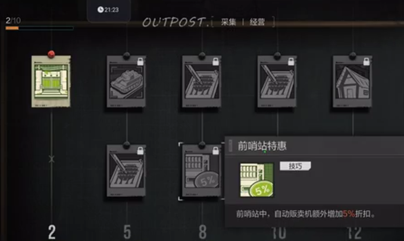 前哨站分支则围绕资源循环与基地运营展开,核心加成涵盖贸易机折扣幅度提升、蓝图解锁速度加快、关键采集点标识强化等。该路线对战斗过程无直接干预,但显著加快发育节奏与物资储备效率,尤其利于重视基建建设与经济优势转化的玩家构建可持续成长体系。