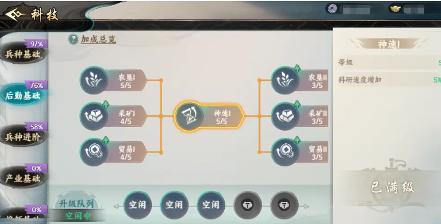 主城等级决定关键建筑上限。太学院作为科技中枢,应列为优先升级对象:其研发的“屯田令”可提升全建筑资源产量,“八阵图”则直接强化全军控制属性,两项科技对战损率、部队续航及PVE通关效率影响显著。建议在主城升至对应等级后立即开启相关科技线,避免科技树闲置造成战力滞后。