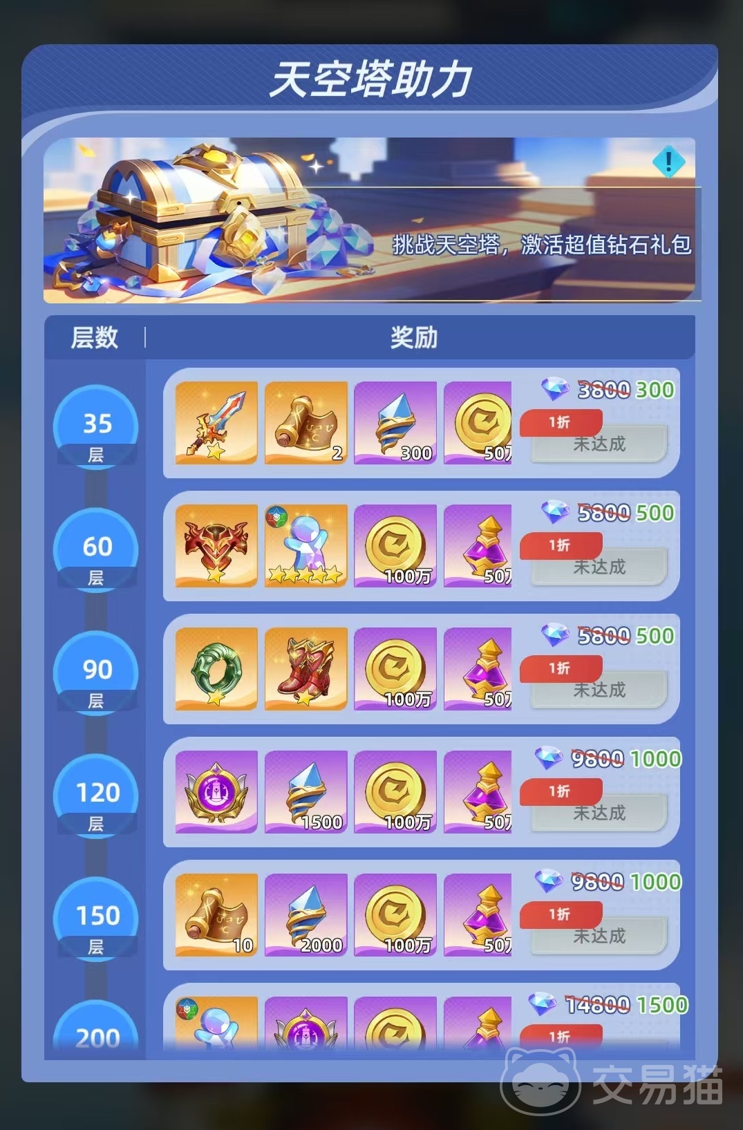 为增强阶段性目标感与即时反馈,系统设置了“每5层开启一次额外宝箱”的机制。宝箱内含钻石、进阶石、稀有英雄装备及英雄碎片等高价值道具,显著提升单位时间内的资源转化效率。建议玩家在战力允许范围内,优先达成最近的5层倍数节点,以最大化短期收益。此外,当通关层数达到特定里程碑时,将激活天空塔助力礼包——该礼包需消耗钻石购买,内容包括稀有装备、黄金契约、核心养成资源等,属于战力跃升阶段的重要补给手段,钻石充裕时建议及时购入。