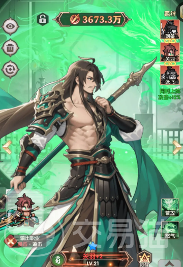 作为经典红将代表,关羽的定位清晰且实用。其普攻“青龙偃月”锁定敌方血量最低单位,造成120%攻击力的物理伤害,并额外附加目标已损失生命值10%的追加伤害(上限为关羽攻击力的300%)。突破至2级后,怒气技能“飞龙在天”释放不再消耗怒气值,对血量低于50%的目标施放时,可触发暴击词条效果,造成高达410%攻击力的单体物理伤害,具备极强的残局收割能力。