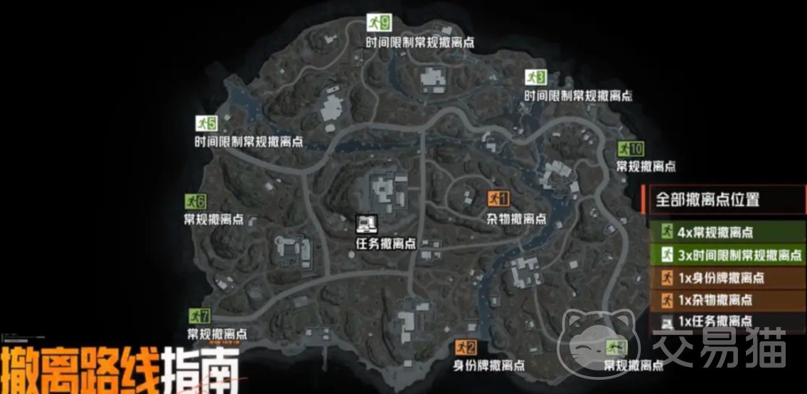 地图共划分8处核心资源聚集区域,按资源等级分为两类:高级资源点包括别墅与诺昂斯庭院;中级资源点涵盖磨坊、聚集地、鱼市、游船码头、俱乐部及小型工厂。撤离点类型丰富,含常规撤离点、时间限制撤离点(仅开放于对局前10分钟)、身份牌撤离点三类。其中常规撤离点每局随机启用一个,时间限制撤离点同样每局仅随机激活一处。