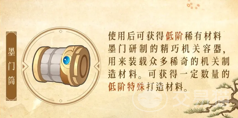 开局选择天工路线后,玩家将逐步解锁《天工开物图鉴》系统。完成首阶段图鉴研习,即可获得关键道具——墨门筒。此物不仅是墨门机关体系的基础构件,更可作为低阶材料参与合成,用于锻造各类功能性器物。日常活动中,通过宗门任务、地图探索及事件奖励,玩家能稳定获取该道具,为后续机关研发奠定资源基础。