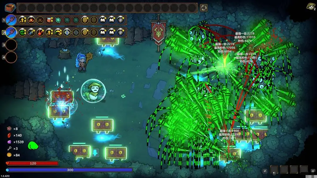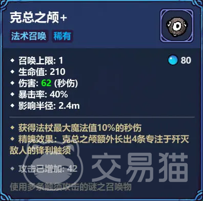 构建该体系的首要目标是提升召唤上限。当前最稳定高效的方案为使用魔导书进行召唤——单层魔导书即可稳定产出三具克总之颅;推荐至少叠加至两层魔导书嵌套结构,即可满足常规战斗对数量的需求。在召唤数量与刷新频率达标后,应重点强化单体输出能力:通过适配法杖装备,可获得相当于最大魔法值10%的每秒魔法伤害加成,直接提升所有触须的伤害基数。