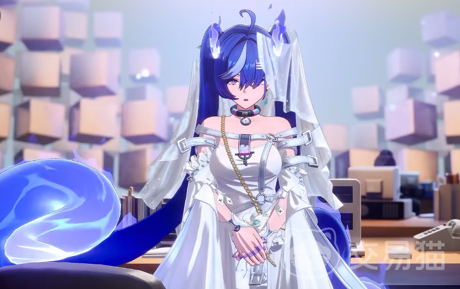 妮夏以少女体型为基准进行建模,标志性的深蓝色长发极具辨识度,配合略带腼腆的神态与肢体语言,塑造出鲜明的二次元角色气质。她在初登场时表现出对玩家较强的亲近意愿,对话中常流露好奇与试探,语气柔和,情绪细腻,后续亦规划有专属剧情线,可供玩家逐步解锁。