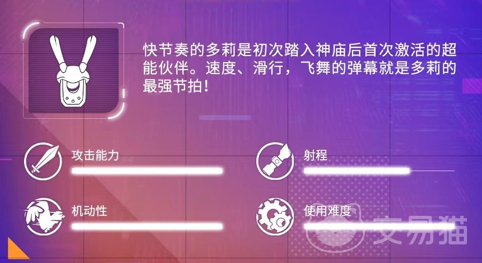多莉的基础属性呈现极端化倾向:攻击数值处于全角色梯队顶端,位移速度与滑行响应速率同样达到满配水准;射程表现稳定于中上区间,但操作容错率极低。该角色对玩家的手动微操精度、节奏预判及地形利用意识提出较高要求,不建议缺乏实战经验的新手直接选用,推荐在熟悉基础移动逻辑与技能衔接后逐步进阶使用。