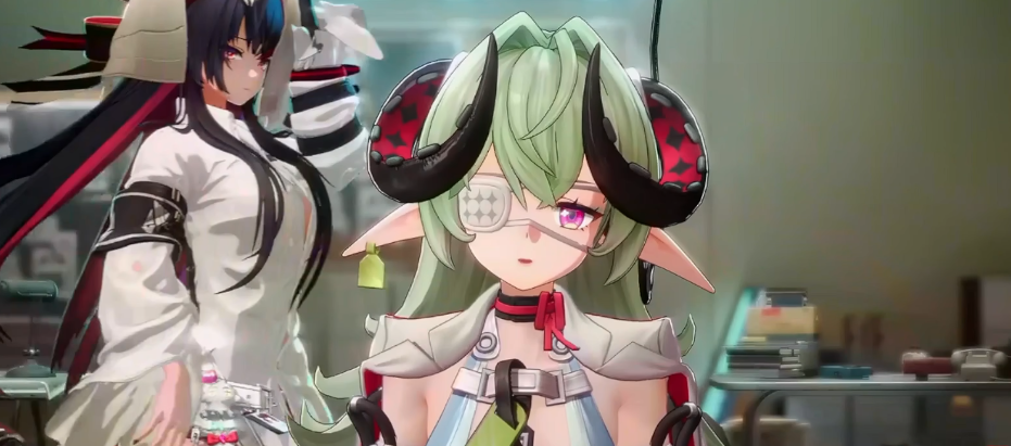 角色形象采用高辨识度青春系风格:基础造型以纯白衬衫搭配短袜构成视觉主调,契合角色设定中的年轻干员身份。服饰系统支持多段解锁,通过与伊洛伊等队友互动可触发不同穿搭形态。值得注意的是,真红的异象融合机制明确指向机械类实体——区别于灵可与小贞的共生型异象联动、或exe的数据流黑客协同模式,真红可绑定各类机械设备实现战术强化。