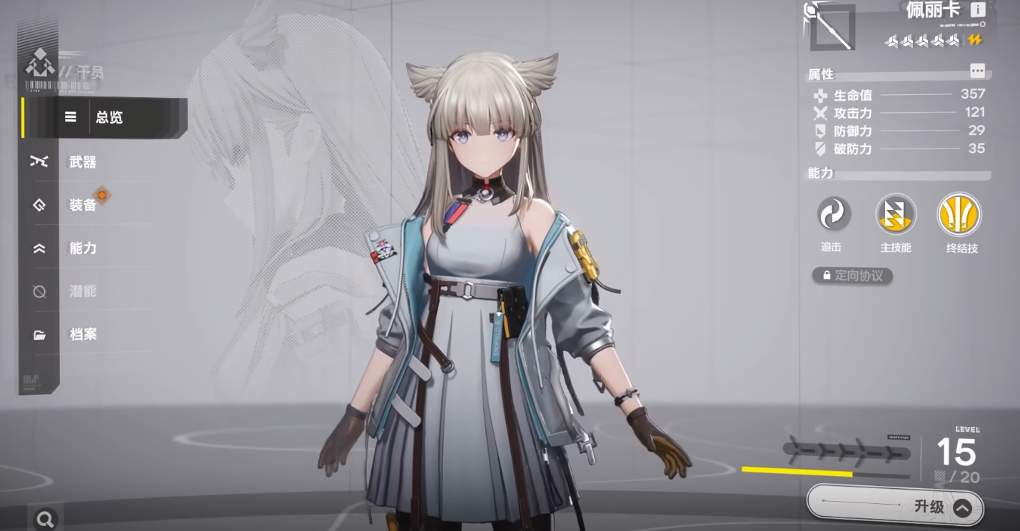 佩丽卡是游戏中首位登场的黎博利干员,亦为终末地工业体系的核心管理者及对外事务代表。她在主线剧情中承担关键叙事功能,同时具备高适配性的战斗能力。其普攻共四段,全部为电磁属性伤害;成功处决目标时,除造成额外电磁伤害外,还可恢复技力。战技可投射一道电磁能量波,对小范围敌人造成电磁伤害并施加电磁附着效果;连携技需由主控角色触发重击后激活,释放蓄能电磁冲击,对范围内敌人造成伤害并赋予导电状态,为后续连锁反应提供条件。