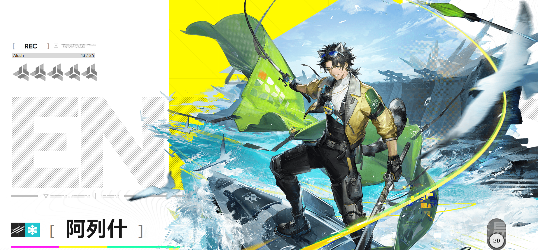 终结技为“超级大鱼砸击”,召唤巨型鱼类对指定区域实施范围打击,附带寒冷效果并恢复技力;若该技能直接消灭敌人,技力返还量将显著提高。综合技能结构可见,阿列什兼具持续输出、状态控制与团队资源补充能力,实际战场职能偏向多功能物理系干员,具体辅助或主C倾向仍待实测数据验证。