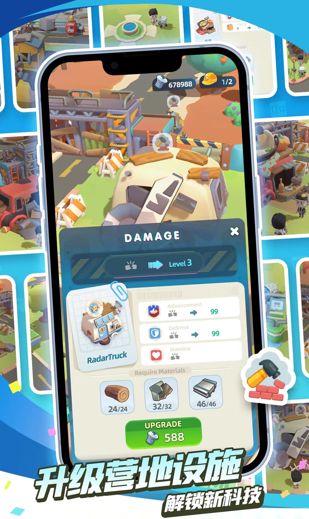 在经营维度上,游戏强调可持续发展逻辑:玩家需统筹营地建设、资源循环与技术演进。例如,基础木材通过砍伐获取,再经由加工设施转化为高阶建材;科技树覆盖能源、防御、农业等多个分支,每项升级均影响后续资源产出效率与功能解锁;贸易系统则允许玩家规划运输路线,与其他幸存据点交换稀缺物资,形成动态经济网络。