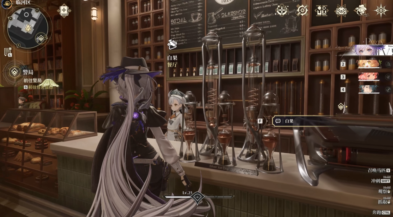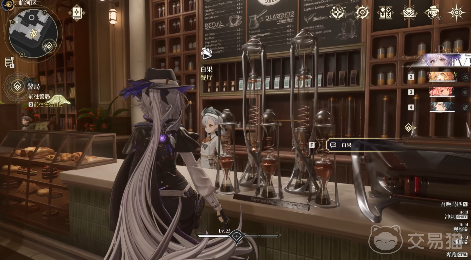该咖啡厅位于白银之城临河区主干道中央,外观为典型欧式风格建筑,辨识度极高。进入后,居中位置即可见NPC白果。与其互动时,推荐使用F键快速触发对话界面,节省操作时间。