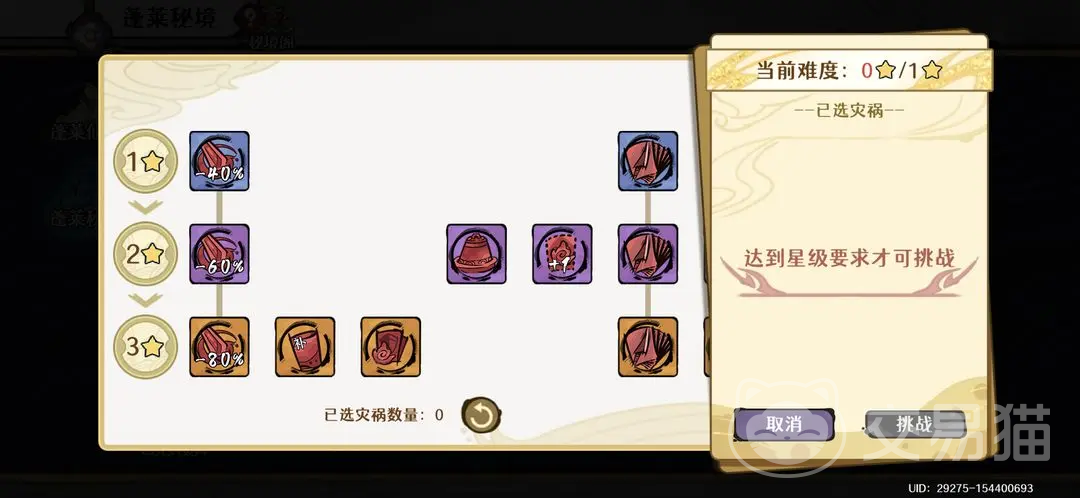 副本内每层均需匹配对应星级的灾祸进行挑战,灾祸星级与层数严格对应:第1层需1星灾祸,第2层需2星灾祸……逐层递增。各层内产出的仙币、可选卡组及属性加成等资源均为单层有效,切换至其他层数后,前述内容将全部重置,不带入新层。