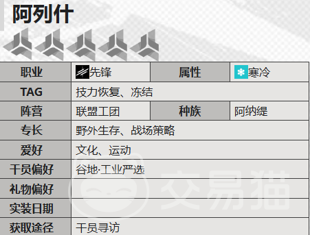 在《明日方舟》与《终末地》联动设定中的阿纳缇阵营里,阿列什是一位极具战术价值的先锋干员。她隶属于阿纳缇种族体系,其设计融合了冰霜控制、能量循环与高机动性三重特性,在当前版本中展现出极强的泛用性,无论是常规关卡推进还是高压力精英副本,均能发挥关键作用。
