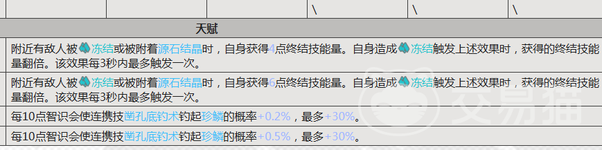 该技能具备多目标命中判定,所有命中均计入回能计算,实现控场与资源再生同步达成。连携技“凿孔底钓术”可在敌方脚下生成塌陷区域,造成范围伤害并返还技能力,同时有概率掉落“钓珍鳞”——若成功触发,将使本次伤害倍率提升至200%。潜能三“愿者上钩”可为全队提供持续10秒、幅度为15%的攻击力加成。终结技“大鳞,上钩!”为大范围寒冷属性AOE技能,落地瞬间施加寒冷杀效果。潜能五进一步强化其斩杀能力:对生命值低于50%的目标,伤害提升至1.5倍;潜能一可降低15%终结技能能量需求。