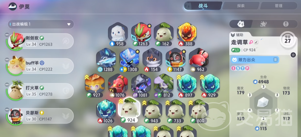 若获得稀有形态的走调草,其能力将进一步升级:除虚弱外,还可同步削减敌方防御力与攻击力数值。面对高威胁输出单位时,走调草与蓬蓬羊的组合不仅能延长我方存活时间,还能为后续爆发创造理想条件。此外,其主动技能可造成大范围伤害,并为己方恢复能量,使整套技能循环更加紧凑高效。