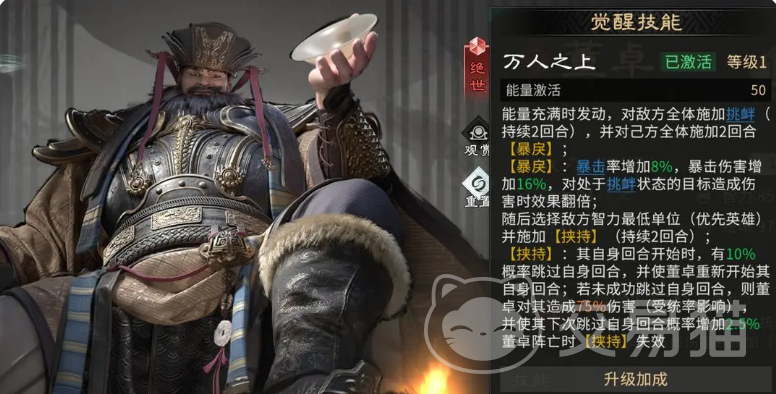 除上述经典组合外,还可根据战局需求灵活替换辅助角色。例如大乔,其前期战法可使敌方随机选择攻击目标,扰乱战术部署;后期凭借追击技“两面三刀”,可降低敌方兵力恢复效果,配合重伤状态进一步放大我方控制收益。董卓则是另一条高适配路径:其被动“阵列”可在造成伤害后削减敌方前排防御,强化我方破防效率;搭配挑衅类战法后,不仅能提升我方暴击率与暴击伤害,其专属控制技“挟持”更可使敌方单体有10%概率跳过行动回合,且该状态还支持自身回合重置,既延长控场时间,又提升我方行动频次与暴击覆盖率。