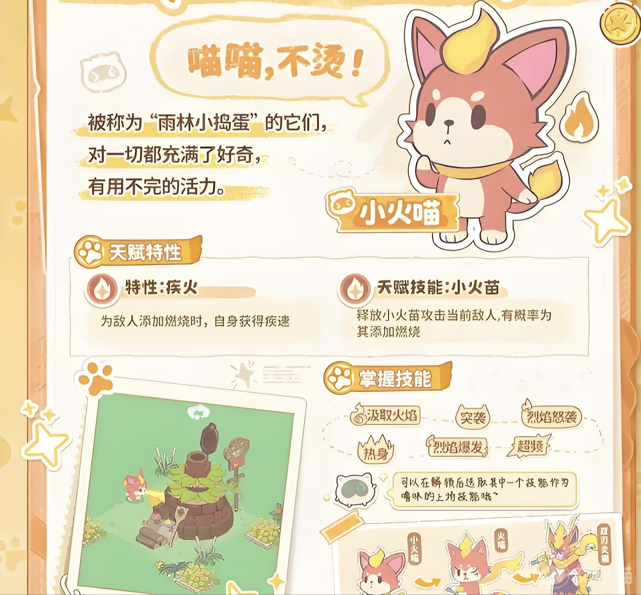 御三家具体指新叶鼠(草系)、小火喵(火系)、水母贝贝(水系)。新叶鼠以森林隐匿能力著称,常态呈叶片形态休眠,受激后展开高速旋转攻击,大招“树叶大风暴”覆盖半径8米扇形区域;小火喵体温随运动强度线性上升,静息体温36.2℃,全力爆发时尾部火囊温度可达1200℃,技能“烈焰弹跳”兼具位移与范围灼伤;水母贝贝栖息于浅水带,触须可感知30米内生物波动,泡泡攻击命中后生成1.5秒禁锢气泡,冷却时间仅4.2秒。三者数值模型严格遵循游戏内属性平衡公式,无任何越界设定。