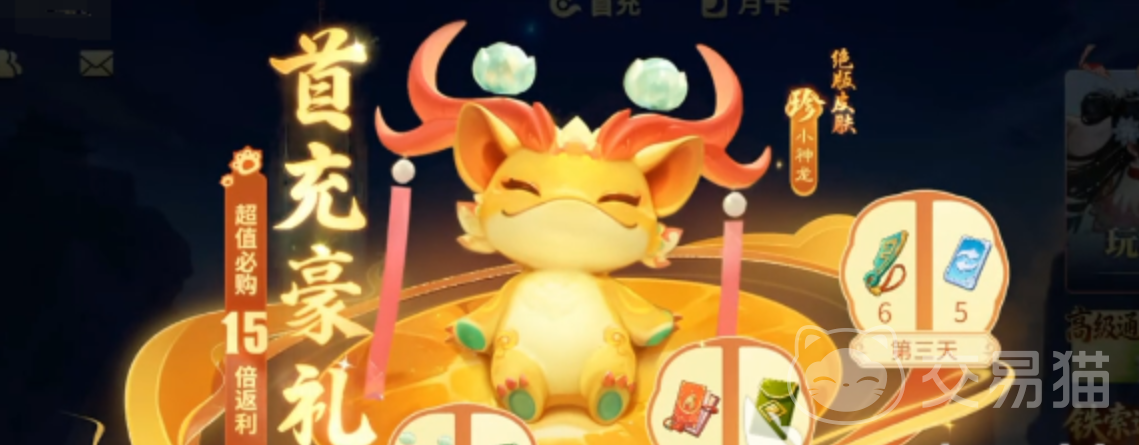 新手入门阶段,6元首充礼包具备明确的时效性与稀缺性:激活后立即解锁“小神龙”限定皮肤,该外观仅在公测初期开放获取,后续版本不再复刻。价格门槛低,覆盖人群广,既可提升角色视觉表现力,也对初期战力成长形成辅助作用,属于高确定性的小额投入选项。
