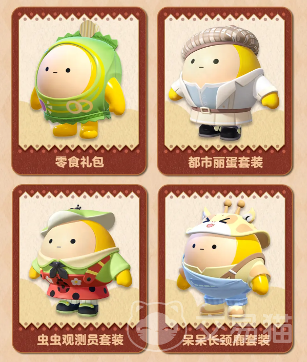 伴随版本更新,瓶盖盲盒系统同步上新四款主题套装:零食礼包、都市丽蛋套装、虫虫观察员套装、呆呆长颈鹿套装。每款均含独特造型与细节设计,玩家可通过常规抽卡方式获取,丰富角色个性化表达。