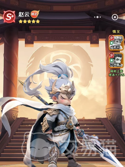 第二位核心培养对象为赵云。其普攻可对敌方前排整列目标造成伤害,并随每次攻击叠加“龙胆”状态,最高叠加至十层。该状态持续提升自身出手速度,叠满后常触发连续行动;且队友受击亦可为其提供层数,实际叠加快速稳定。升星后解锁专属保命机制:当生命值降至30%以下时,自动触发一次额外行动并恢复一定生命值。此特性大幅增强其在持久战与Boss战中的生存韧性,有效避免因单点暴毙导致的团队输出中断,是高难度内容通关的关键支点。