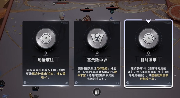 前期过渡阶段建议优先锁定姬小满与亚瑟,二者对装备与等级依赖较低,具备快速成型能力。在此期间,应集中获取带有“日落海”专属词条的卡牌,尤其推荐优先拾取【智能装甲】效果——该增益可使任意一名单位穿戴防御装后,免疫敌方连续攻击,大幅提升中期容错率。