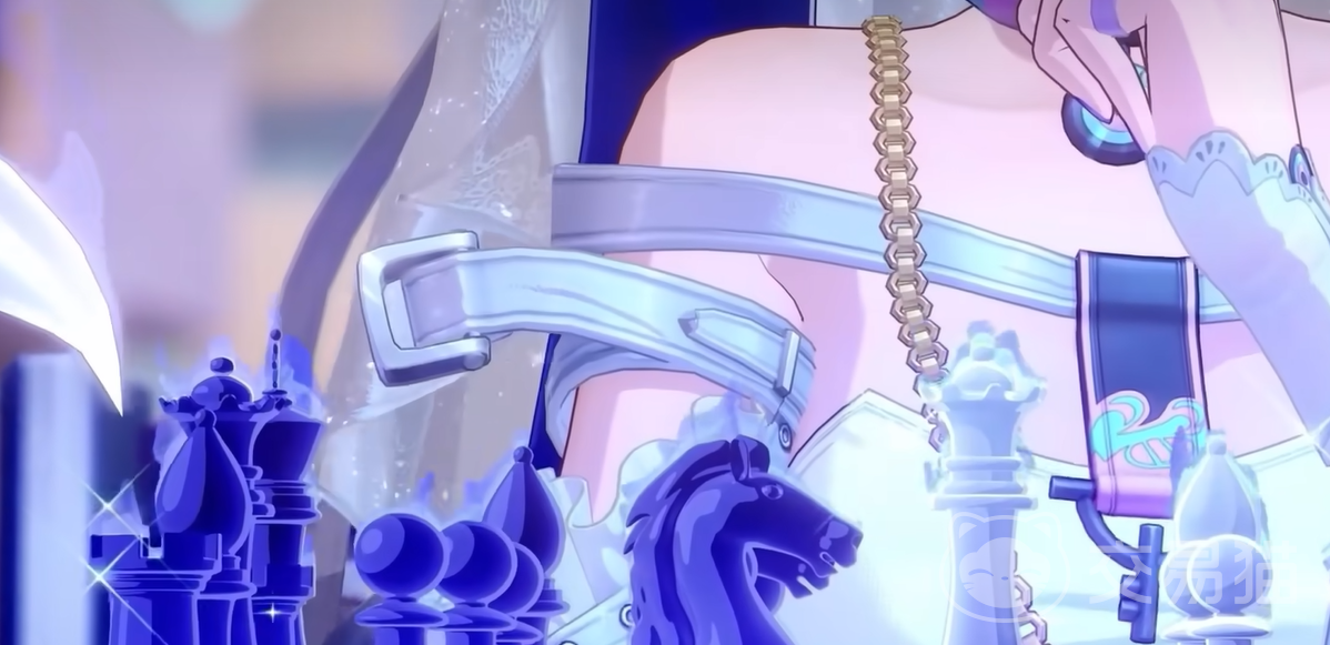从角色签名设计切入,可发现其字体兼具手写韵律与装饰性,下方嵌入标准国际象棋棋盘图案。黑白棋子呈对峙布局,暗示内在矛盾性;尤为关键的是,所有棋子表面均覆盖半透明蓝色幽焰,呼应其头顶悬浮的冷色调魂火及发丝散发的荧光效果。结合“幽灵系”官方分类,基本确认其异能根源指向亡灵能量体系——既非传统召唤类,亦非纯元素操控,更倾向以自身为媒介实现形态转化或能量具现化。PV中长发多次呈现延展、缠绕、突刺等动态,初步判断该部位具备实体化攻击能力,变身机制存在较高实现概率。