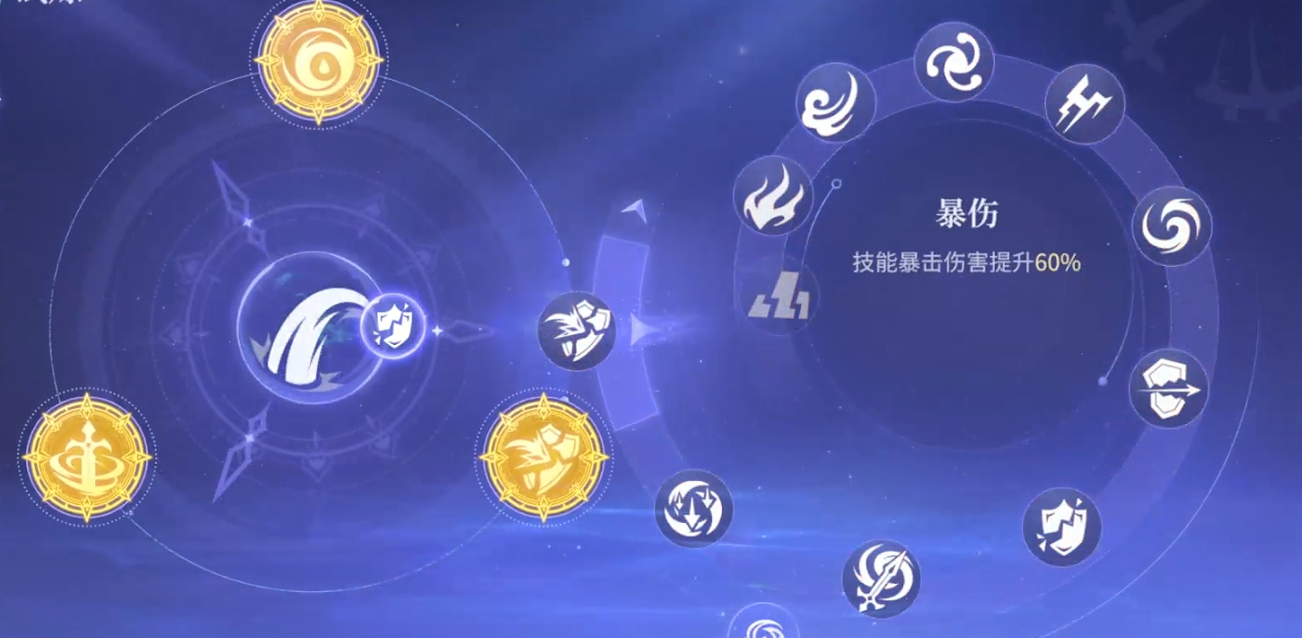 四环配置:特性选用暴伤,魂印组合为攻袭、聚伤、穿透或元素。