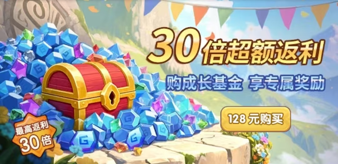 成长基金1:定价128元,通关主线第1至10章后分阶段解锁钻石返还奖励。