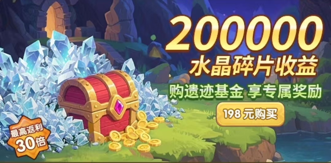 遗迹基金:定价198元,在遗迹玩法中达成指定抽卡次数后,结算大量上古水晶碎片。