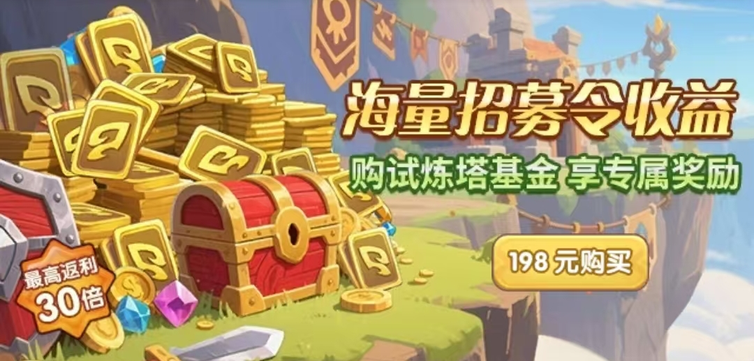 试炼基金:定价198元,达成指定试炼塔关卡进度后,发放招募劵作为核心回报。