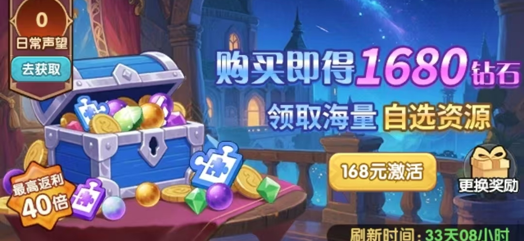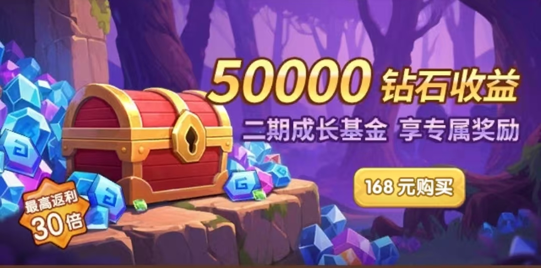 成长基金2:定价168元,通关主线第11至20章后触发钻石返还机制。