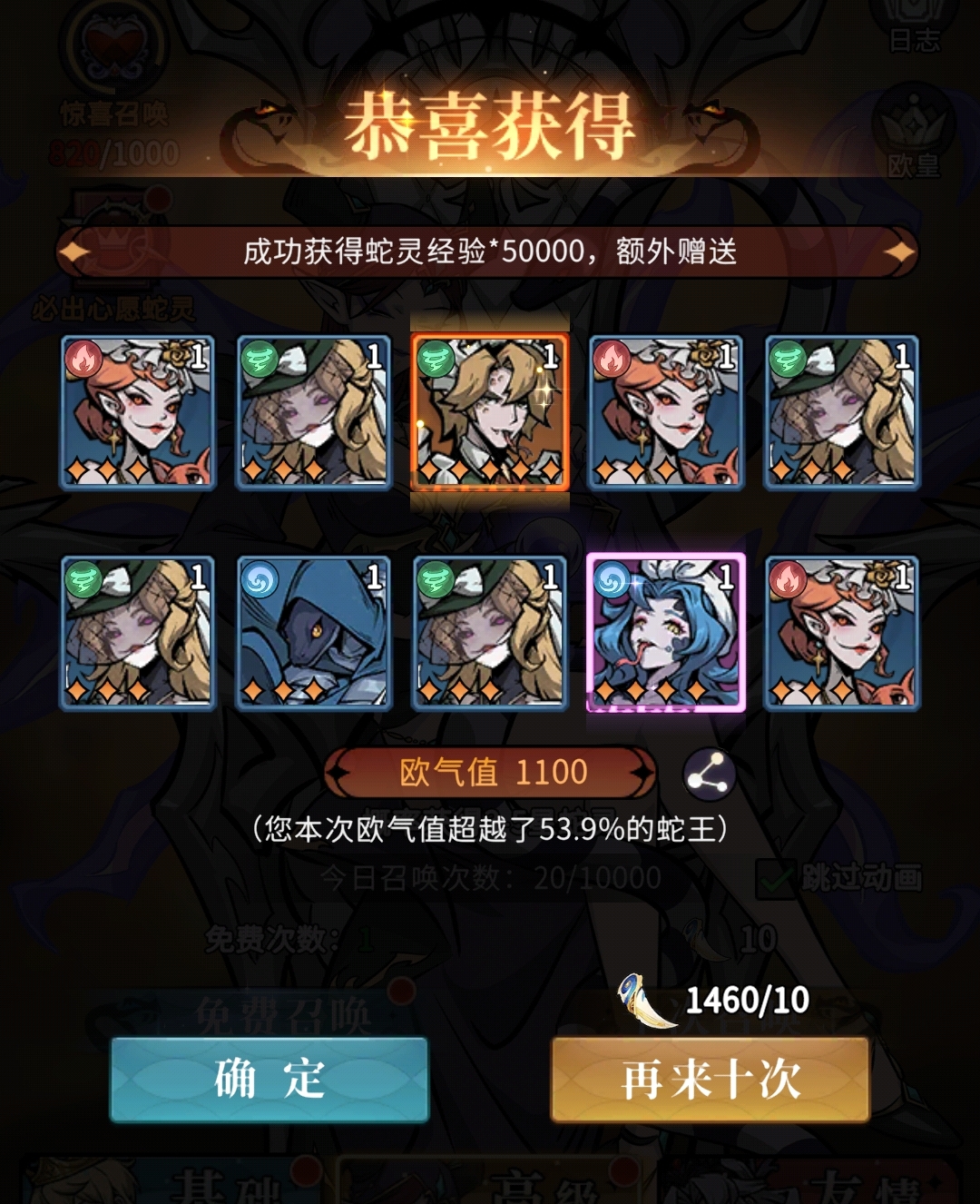 新手阶段的核心目标是快速推进主线章节。每通关一个关卡,不仅能获得经验、金币、蛇鳞、蛇牙等关键养成材料,还能在特定章节节点领取限定蛇灵奖励。此外,挂机收益与当前最高通关进度严格绑定——关卡推进越深,离线挂机产出的资源越丰富。因此,集中精力突破前期章节,是提升角色战力与资源积累效率最直接有效的路径。