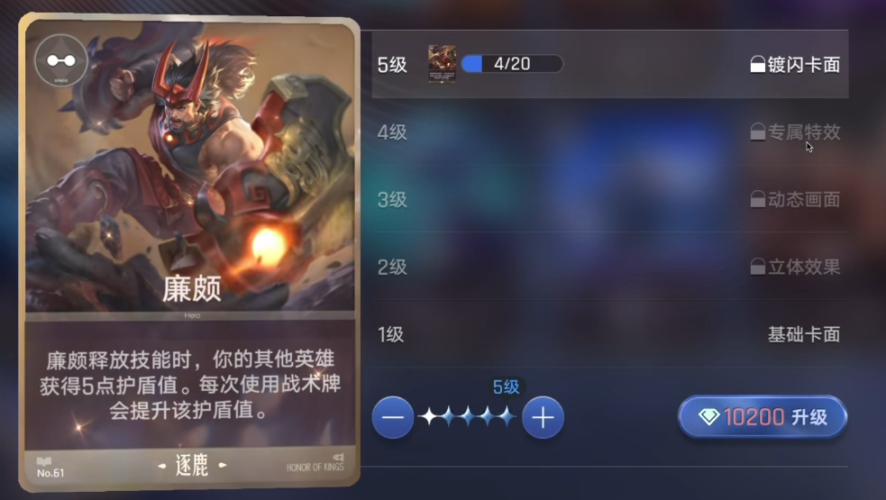 廉颇通过技能释放生成护盾,后期在卡组丰富后可配合队友完成护盾转化爆发,但单体数值上限偏低,依赖体系支撑。