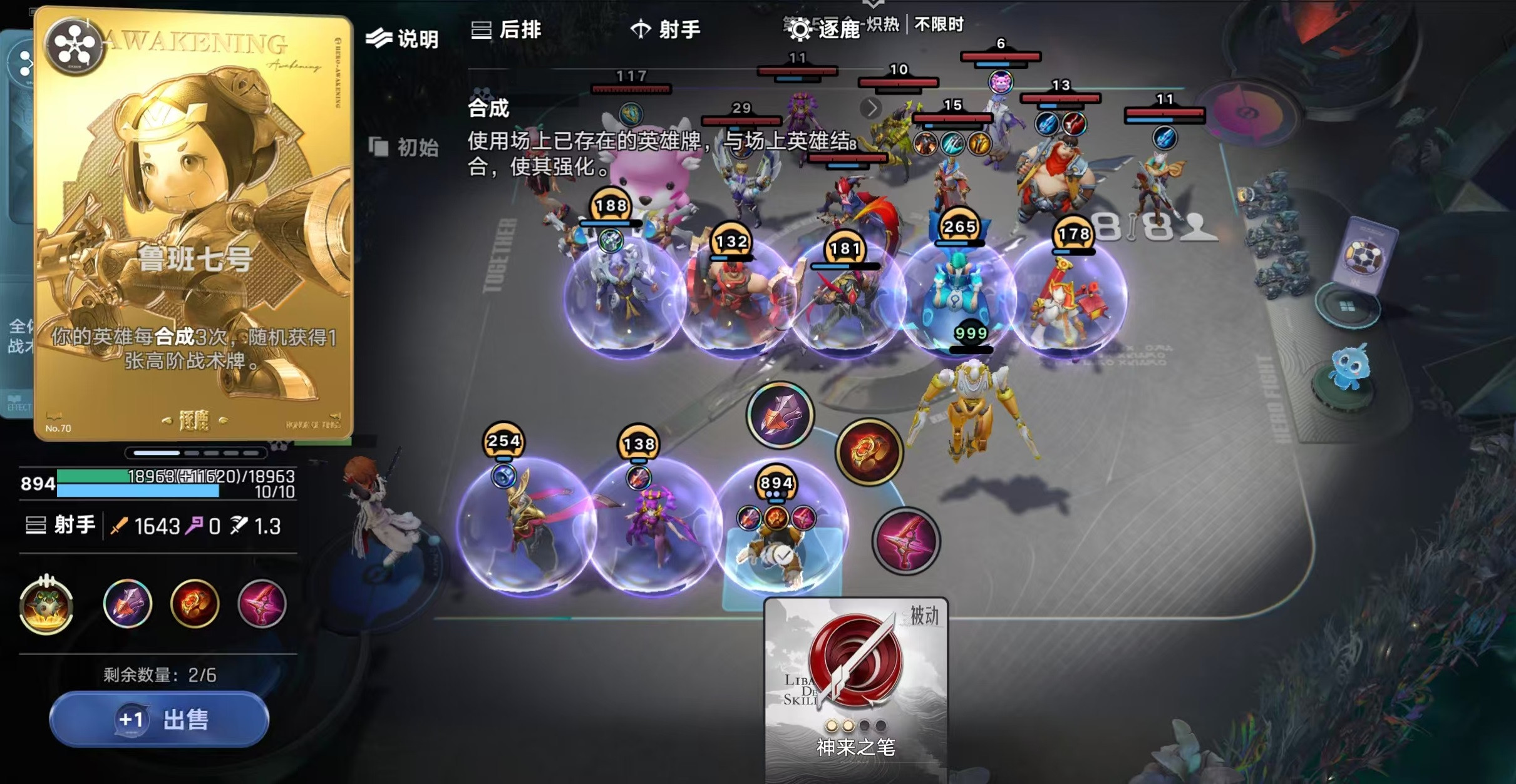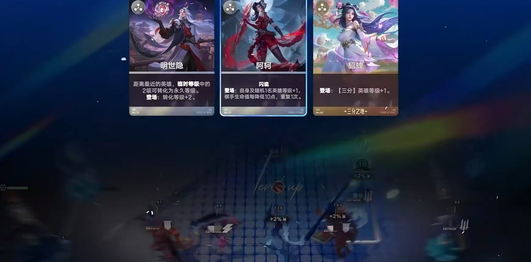 前期(第1–6回合)以稳血线、攒资源为核心目标。建议优先升至3级,避免过早消耗能量刷牌。此阶段应选用孙膑、曜等低费高性价比英雄过渡,并锁定其卡牌确保快速觉醒。免费刷新次数与初始能量需合理留存,为中期转型预留空间。中期(第7–15回合)重点在于等级跃迁与阵容定型,目标等级为4–5级。此时应启用手动刷新,结合阵营抽卡与指定阶位兑换券,精准补强核心体系。若已明确主玩阵营,同阵营羁绊叠加可有效提升对应卡牌掉落率,降低随机性干扰。后期(第16回合起)进入决赛圈博弈阶段,必须尽快升至6级以激活高阶卡牌概率加成;配合秘籍牌实现定向补充,必要时启用梦幻商店,在残血压力下搏取高频关键卡完成翻盘。