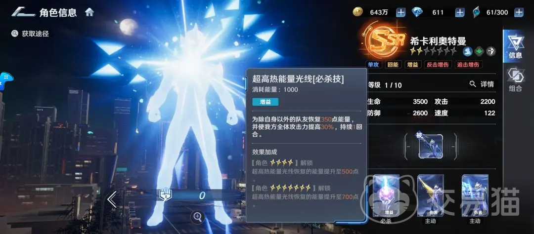 定位为高速辅助型奥特曼,基础防御与生命值处于中游区间。核心价值在于战场资源调度与团队增益:可施放持续性治疗效果,为己方单位提供稳定续航;同时通过多层buff叠加显著提升全队作战效率。其战斗风格融合精密计算与精准格斗,光线技与近战连击均具备高度战术适配性。