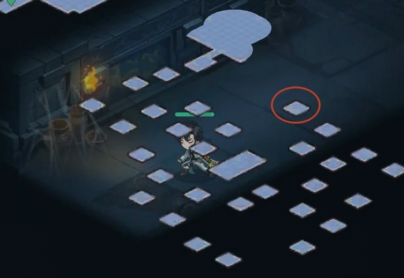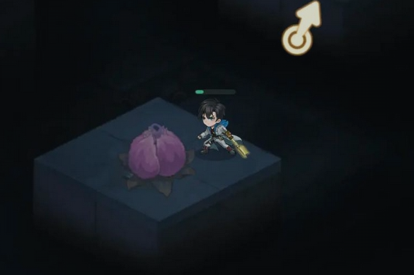 门开之后,需立即前往钥匙所在区域。常见误区是误判坐标——钥匙并非位于地图右上角顶点,而是固定存在于右上方某一特定区块内。打开全屏地图后,可见红色圆圈标记该区域中心。锁定方向后向目标行进,途中将经过一段需跳跃通过的地形。跳跃过程无失败惩罚,坠落可即时重试;建议调整角色朝向,待蓄力条完全充能后松手,多次尝试即可稳定落于钥匙旁的指定方格,拾取钥匙。