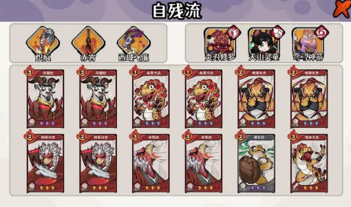 第三类为「自残流」,属于高风险高回报型操作向流派。其机制围绕生命值牺牲换取行动增益,强调精准控血与节奏预判。天山灵童、炎刃修罗与弯弓神箭构成该体系三角支柱:天山灵童的输出强度直接挂钩自残比例,血量越低,技能倍率越高;弯弓神箭提供持续站场能力与压力分散效果,缓解己方生存压力;炎刃修罗则通过被动减伤与状态抗性,保障队伍在低血线状态下仍保有基本作战韧性。该流派对操作熟练度要求较高,但一旦成型,可在单位时间内打出远超常规的技能释放密度与总伤数值。