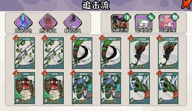 首推「追击流」——主打高频率外功连击与开局压制。该流派以柘荣为推荐起点,特别适合入门玩家掌握节奏逻辑。核心三人组为追风剑客、玲珑玉兔与凶神恶煞:追风剑客承担主要输出职责,技能多为外功伤害,攻击间隔短、触发频次高;凶神恶煞驻守前排,提供稳定承伤能力,并附加额外护甲效果,有效支撑玲珑玉兔的战术运转;玲珑玉兔则负责抽牌与回路维持,保障卡组循环不断档,使整套体系能在前中期迅速建立行动优势,压制对手出牌节奏。
